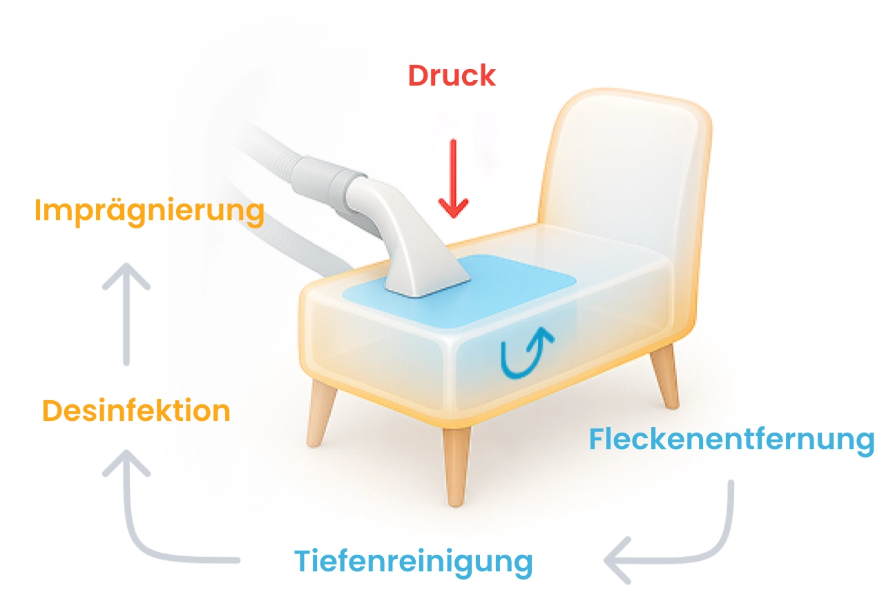 Sie relaxen. Wir reinigen Vor-Ort. Nach wenigen Stunden sind Ihre Möbel wieder optisch und hygienisch sauber.